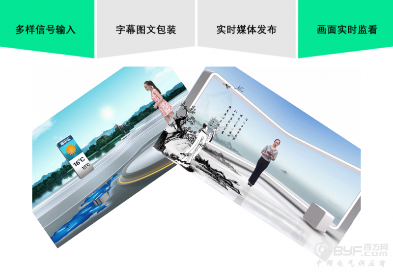 系统具有三维空间、三维模型和三维跟踪,广播级图像输出,可同时实时渲染数十万个三角面片、两百多兆纹理贴图、全部类型的灯光及指数型光照模型、多路活动视频,因此可以实现大场景、精细化、色彩丰富的虚拟场景!