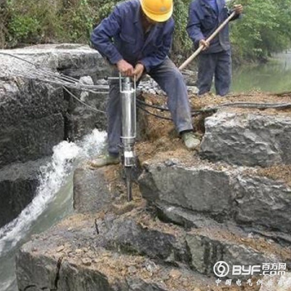 3)分裂:插入破除枪,分裂岩石表面,依断裂层拆除;液压劈石棒价格岩石劈裂棒生产厂家热卖岩都180液压劈裂棒工作时间短,就是活塞从油缸伸出的时间。在1分钟之间方可达到岩石的明显效果。首先将液压劈裂棒放入180孔内,务必保证活塞全部放入。启动电源,换动手动换向阀至蓝色油管,开始进油,活塞开始伸出,在孔内产生向临空面方向的推力,岩石表面会出现纹路。液压油表显示液压达到120mpa时,液压站停止工作,处于保压状态,意味着工作以完成。只要换动手动阀黑色油管,活塞收缩,人工提出。 依次重复,操作简单,方便易学。液压劈裂棒操作方法:1向油站加入抗磨液压油,需加满。液压油站下方有游标,参照游标即可。2需接好三相四线380v。电机需正传,顺时针方向。3将高压油管与劈裂棒相连接,油管颜色可分蓝色,黑色,蓝管高压,黑管低压。4打孔钻机,180孔,孔深浅1米2。能深不能浅5棒距100,与临空面距离100.这是针对花岗岩开采标准。根据岩石岩质而定。180液压劈裂棒主要适用于各种坚硬岩石的无声开采,花岗岩,火山岩,石英岩、玄武岩,石英斑岩、硅质片岩,砂岩、石灰岩、大理岩、白云岩、黄铁矿等。