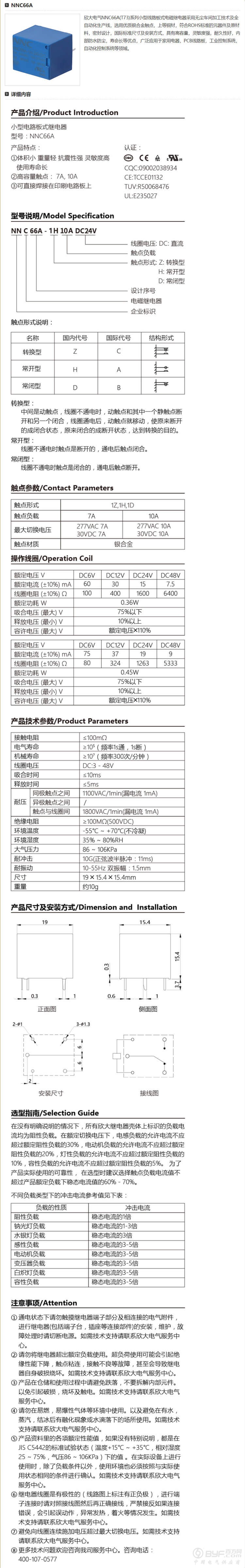 欣大NNC66A-1H(T73)小型线路板式继电器 10A