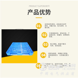 出口蓝色塑料托盘网格川字形产品优点:
