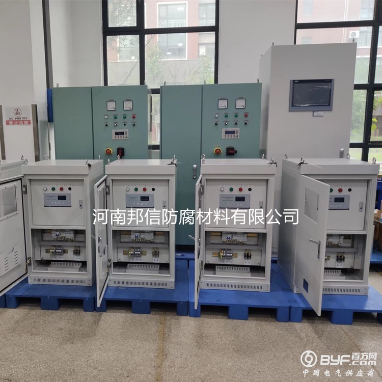 恒电位仪的接线不复杂,一般由4条电缆组成(不考虑误差、故障报警等附属电路可引出的信号接线),分别接于:输出阴极、输出阳极、零位接阴、参比电极。输出阴极是恒电位仪输出的负端子,接至被保护物的通电点,输出阳极是恒电位仪的正端子,接至辅助阳极(地床或深井阳极);零位接阴是仪器电路的地端,接于被保护物通电点附近,参比电极即取样信号输入端,接埋设在通电点附近的参比电极。输出阴极和输出阳极电缆要有足够的截面积,一般不应小于10mm2;零位接阴和参比电极对电缆截面无要求,只考虑足够强度即可。恒电位仪的接线都应该是铜线,远端并应焊接。