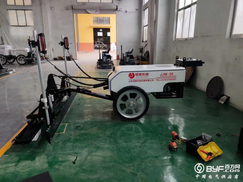 两轮激光整平机结构轻便灵活,机器仅重285kg;电动振动,电动转向、电动行走;品牌发动机动力充足。更大的降低施工工人的劳动强度,提高施工质量;机器自带微调功能,主要结构件为精选材质,性能更加稳定;智能操作面板,操控灵活,单人即可操作施工;激光发射器独立布置,保证地面标高一致,不会产生误差;减少了人力,提高了速度。