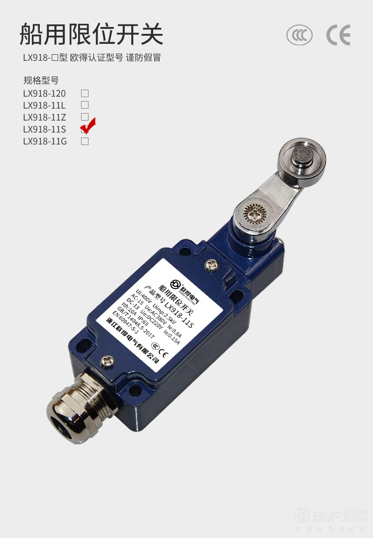LX918-11S船用限位开关 滚轮摆杆式 欧得行程开关