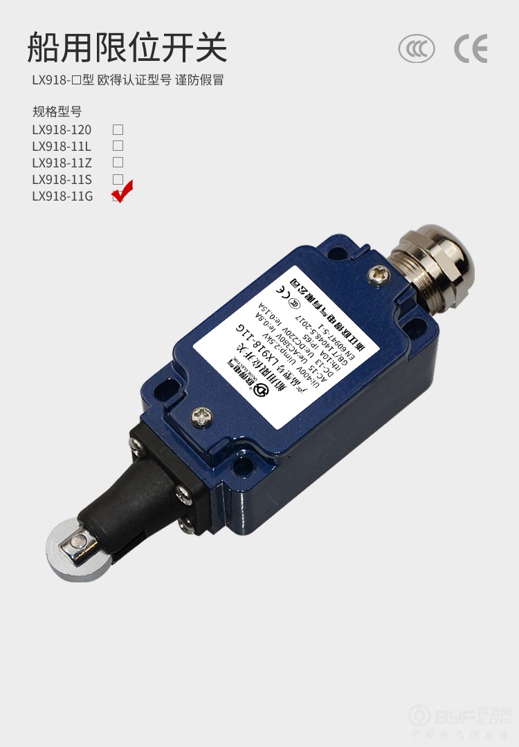 LX918-11G船用限位开关 滚轮柱塞式 欧得行程开关