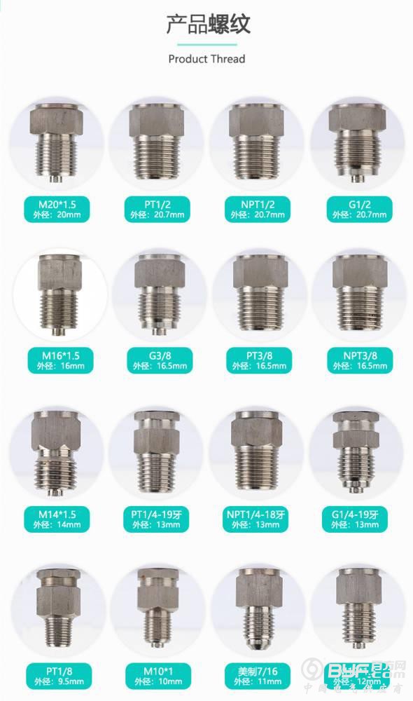 接头螺纹 | M10×1 | M14×1.5 | M20×1.5 | ||||