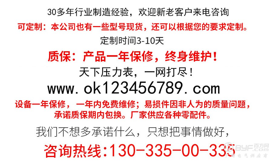 ◆用途:该系列仪表全部采用有良好耐腐蚀性能的不锈钢材质制造,主要零件采用1Cr18Ni9、OCr18Ni12Mo2Ti、SUS316、SUS316L等材料,适用于有腐蚀性的环境,可检测有弱腐蚀性,但不结晶、不凝固、粘度低的液体、气体或蒸汽等介质的压力。